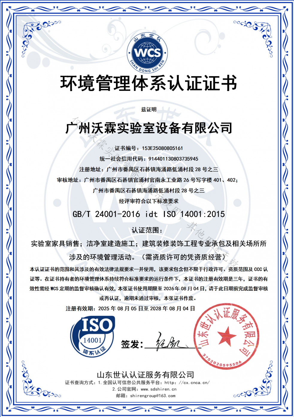 ISO14001環(huán)境管理體系認(rèn)證證書(2025-2028)