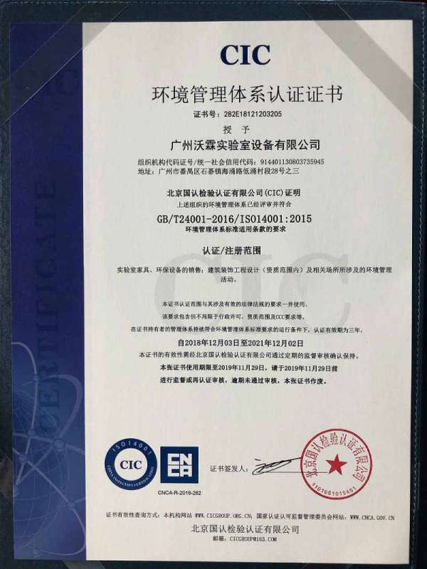 ISO14001環(huán)境管理體系認(rèn)證證書(2018-2019)