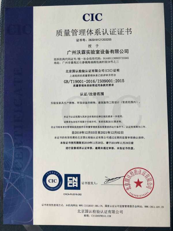 ISO0900 質(zhì)量管理體系認(rèn)證證書(2018-2019)