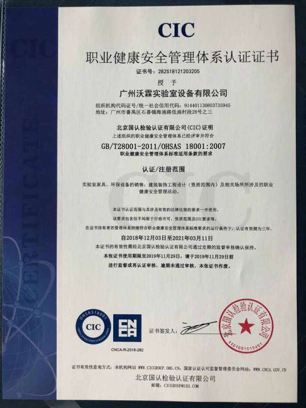 OHSAS18001職業(yè)健康安全認(rèn)證證書(2018-2019)